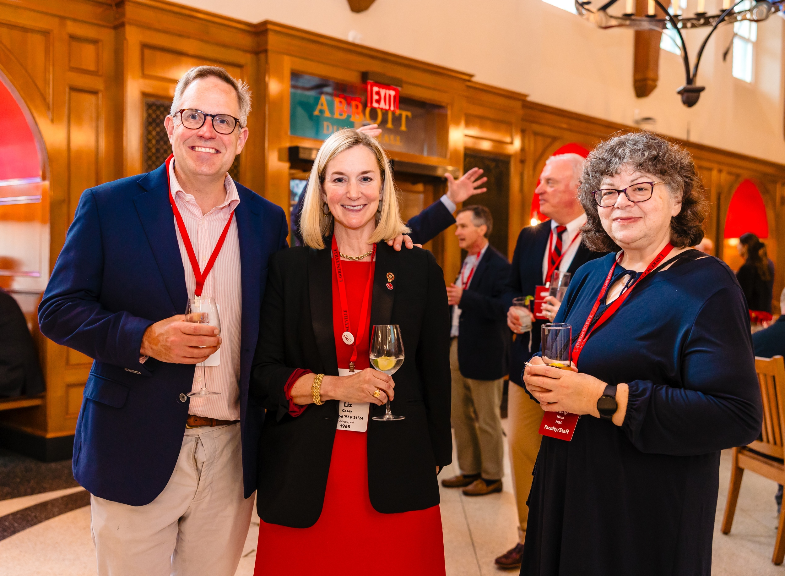 Kevin Huang ’05 and Jay Ottinger received the Big Red Award from outgoing Alumni Association President Heather Elliott Hoover ’91 P’20 ’23 ’24.